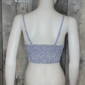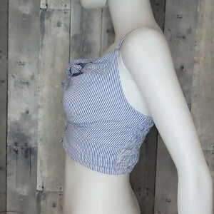 Stripped Crop Front Tie Ruched Back Spaghetti Strap Top. Super cute and sexy. Name,care and size tag has been cut