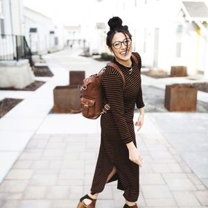 Long Sleeve Stripped Maxi Dress 95% cotton 5% spandex Thicker Material Burnt Orange/Brown and Black Stripes