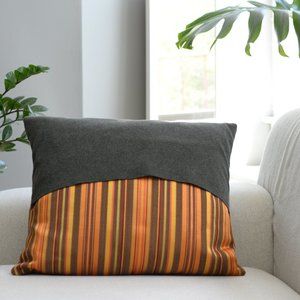 Stripped Orange & Gray, Handmade Decorative Pillow Cover, 14X18