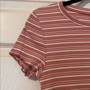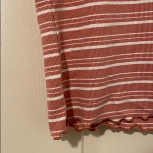 This top is PERFECT for summer! It’s made of a high quality stretchy material. It’s ribbed and slightly cropped. The gathered hem and sleeves are super cute! Only been worn a few times! Fits M/L! Brand is Live Love Dream, not Aeropostale.