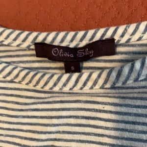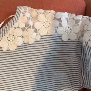 Navy and white stripped top with cute flower shoulders size small. No rips stains or tears. Smoke free pet free home.