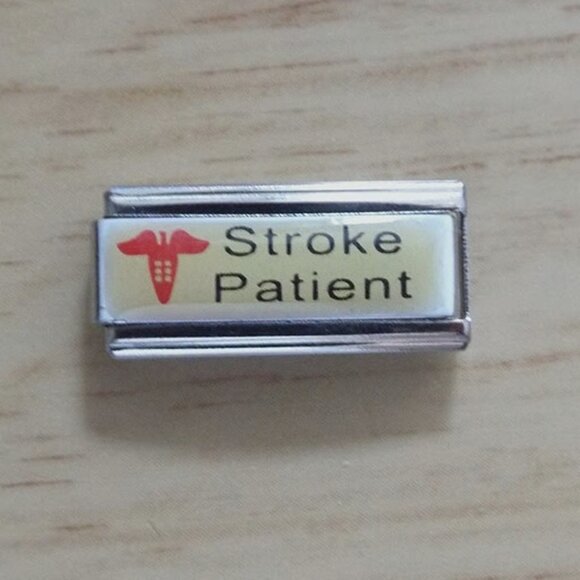 New never used stainless steel Italian charm photo super link with Stroke Patient and a medical caduceus sign on it.Super links take the place of 2 standard sized links. Fits all standard 9mm Italian charm bracelets, thanks for looking!