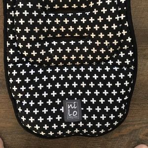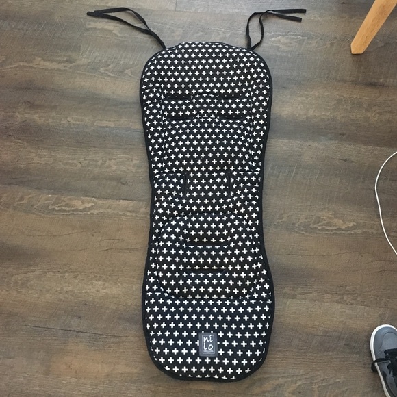 Nini & Loli stroller liner. Very cushioned for extra comfort. Naturally keeps heat out. Universal & reversible. Black & white monochrome on one side, solid black on the other. Fits most strollers. Was used with a bugaboo chameleon 3 stroller.