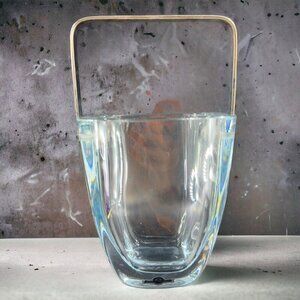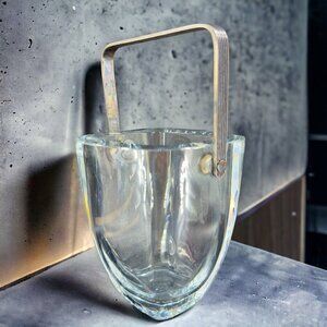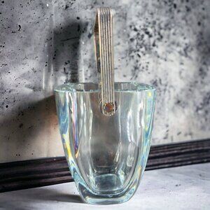 Strombergshyttan Clear Thick Heavy Glass Ice Bucket with Silver Tone Handle HRH