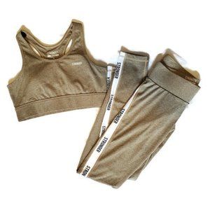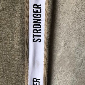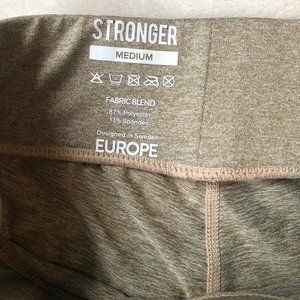 Stronger Label leggings in tan/sand color. Squat proof. Flattering wide waistband doesn't cut into your skin. Like new condition except for a small stain on the side as shown in the close up picture. Offers welcome.