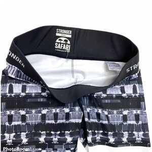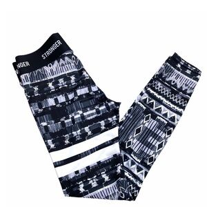 Stronger Safari Logo Aztec Print Leggings Black and White