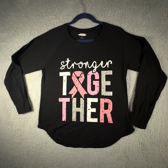 Stronger Together Womens Long Sleeve T Shirt Large Black Pink Ribbon
