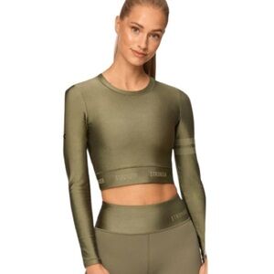 Shimmer and shine in this quick-drying, sweat-wicking, delightfully stretchy crop top.