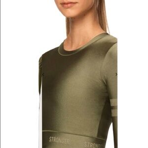 Built with a fashionable and functional tight fit, this top features subtle Stronger logos at the waist and signature Stronger stripes on the left sleeve.