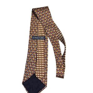 Structure 100% Silk Geometric Pattern Tie Multicolor USA 4" wide 57" long
