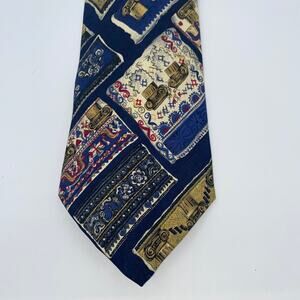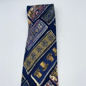 Structure 100% Silk Italian Fabric Blue Gold Red Neck Tie men's 58"