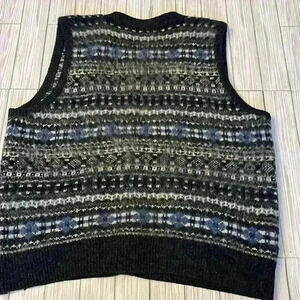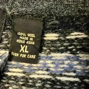 Size XL. 100% wool. Button up. Front pockets. Small holes as shown in pictures.