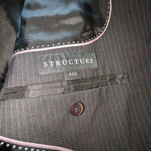 The Structure black blazer is a refined piece in the Suits & Blazers category, offering a sophisticated look with its deep black color and classic notch lapel. This sport coat is crafted from a high-quality fabric, ensuring a professional and polished appearance for any formal or semi-formal occasion.