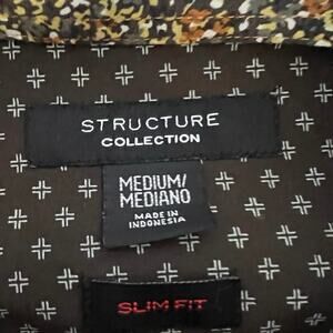 Structure Collection Neutral Color Ditzy Print Slim Fit Button Down Size M