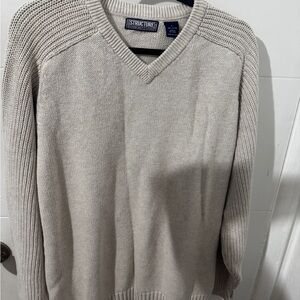 Structure Cream V-Neck Sweater Ribbed Knit SIZE -L