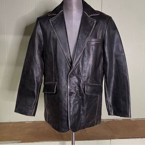 Structure Leather Blazer Jacket in Distressed Black Men’s Medium