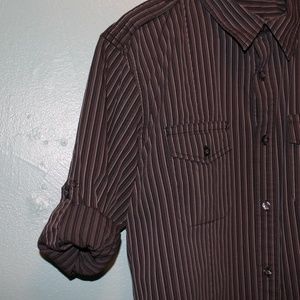 Gently worn and in great condition! Sleeves can be rolled up and held together with strap included on the inside of each sleeve. Includes original replacement buttons.