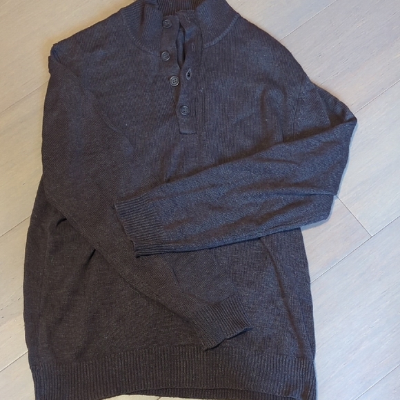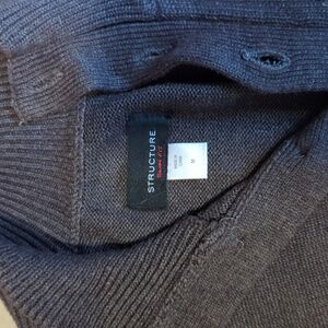 Structure classic men's button mock-neck sweater, slim fit size medium. Chocolate brown color. Soft and comfortable cotton blend.