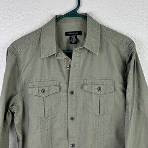 Structure Mens Sz S Linen Blend Roll Tab Long Sleeve Military Fall Summer