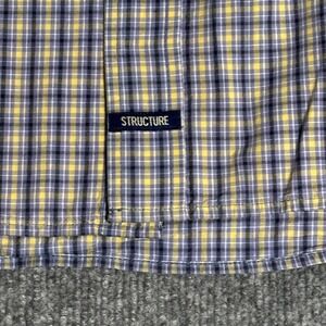 Structure Shirt Mens XL Blue Yellow Plaid Button Down Short Sleeve Cotton Casual