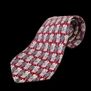 Whimsical White Daisies on Red Silk Necktie with a touch of blue