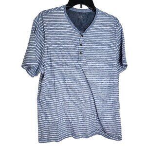 Structure Slim Fit XL Blue White Striped Crew Neck 1/4 Button Up Cotton Shirt