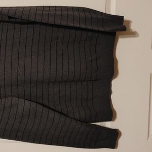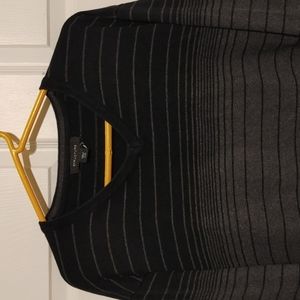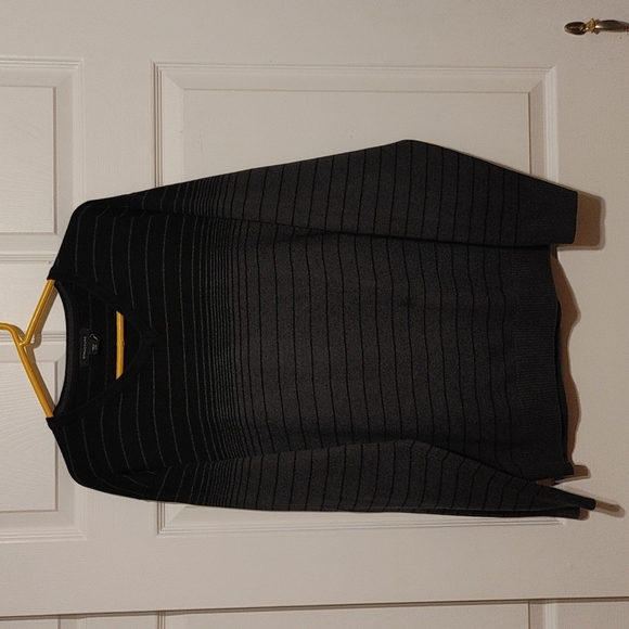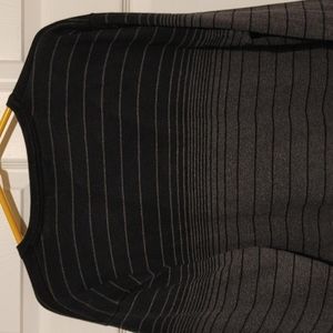 Black and gray striped sweater with an ombre look. Long sleeve; v-neck. Worn once