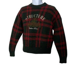 Structure Vintage 1990's 100% Wool Thick Plaid Embroidered Pullover Sweater XL