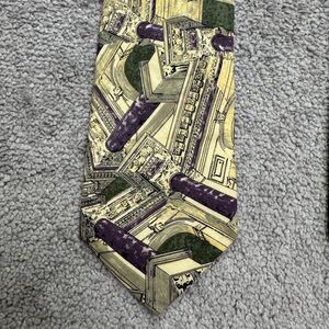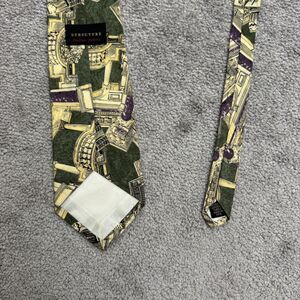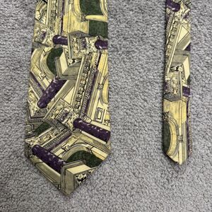 Structure Vintage 90s Cotton Architecture Building Print Necktie Mens Green Y2K