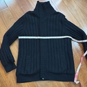 Structure Vintage Black High Neck Fleece Quilted lined Knit Cardigan size XXL