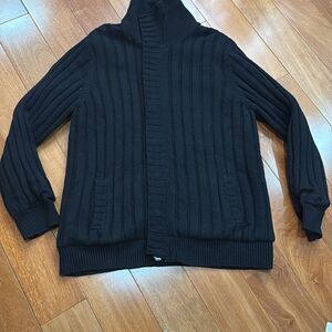 Structure Vintage Black High Neck Fleece Quilted lined Knit Cardigan size XXL in excellent condition.