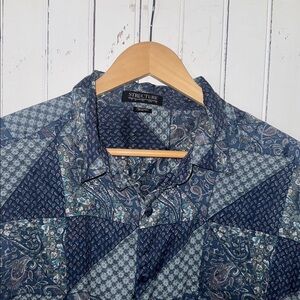 Structure Vintage Button Down Shirt Blue Paisley Size XL