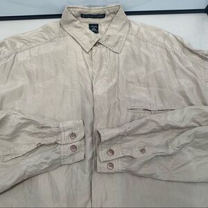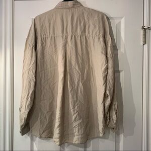 Structure Womens M 100% Silk Tan Popover Blouse Long Sleeve Relaxed Fit Top