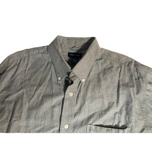 This Structure men's gray office business work button-down long sleeve shirt is a versatile and stylish addition to any man's wardrobe. Made of lightweight and breathable cotton fabric, this shirt is perfect for all seasons and features a modern fit for a sleek and polished look. The collared neckline and button-down style add a touch of sophistication, making it suitable for both casual and business occasions. With its easy-care, stretchy, and packable design, this shirt is both practical and fashionable. The solid gray color and button accents add a classic touch to this timeless piece.