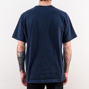 • navy blue w/ yellow and white print on front