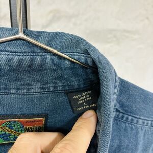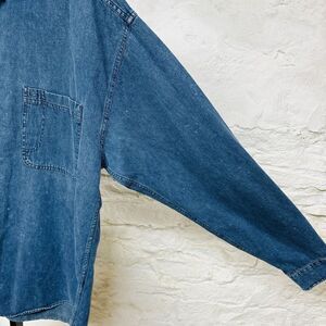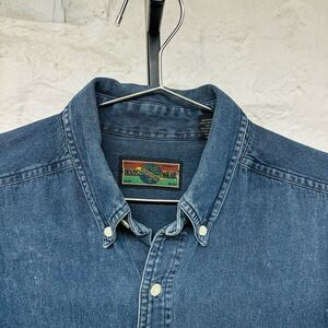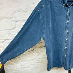 Structure Denim Shirt Long Sleeve Button Down Faded Dark Wash Vintage 90s Large