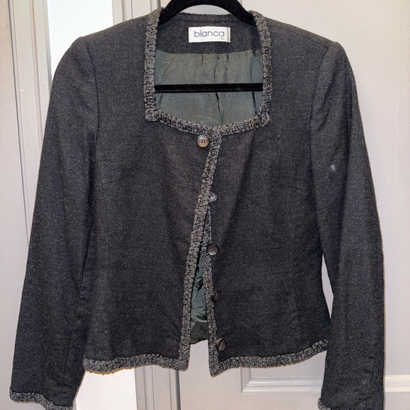 Elevate your style with the Women's Gray Jacket. This elegant piece features a classic design, perfect for any occasion. The soft gray color adds a touch of sophistication to your wardrobe.