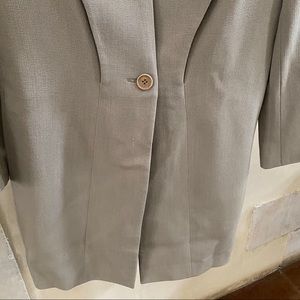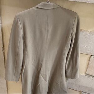 A stunning Emporio Armani Jacket. Single button closure. Fully lined. In good lightly used condition. No major flaws. Well kept! From the 90s. Shoulder pads. A sleek and smart piece that is timeless. Beige/tan color. Inside pocket. Crisp, clean,chic. Size 42 Italy, approx size 6 US. Made in Italy.