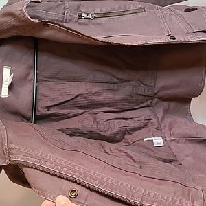 This jacket has it all! Button details on the pockets (with the spare button in a pocket), zipper details on the front upper pockets, patches on the elbows for reinforcement, and a nicely tailored look to show off the curves!