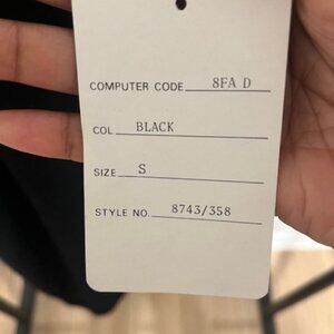 A sleek, all-black skirt made from non-stretch knit fabric. It falls below the knee with a clean, tailored shape for a refined, minimalist look