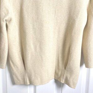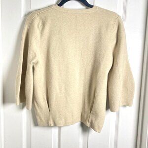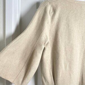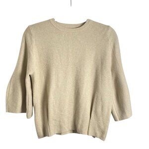 Structured Pin Tuck Sweater Beige Size Small 3/4 Bell Sleeves Round Neckline