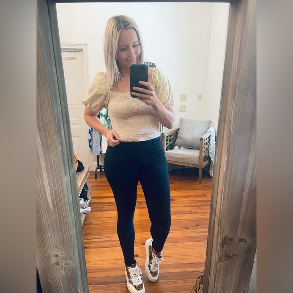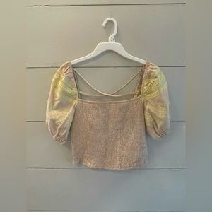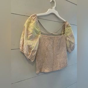 Like new strut and bolt embroidered smocked top size large crop top
