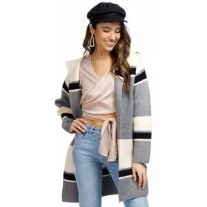 Strut & Bolt Carmine Chunky Knit Cardigan Wool Blend Striped Blanket Sweater