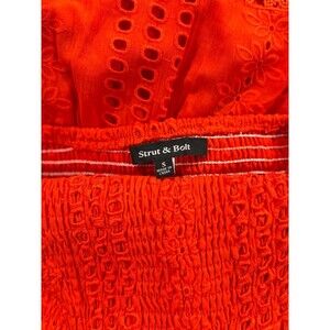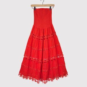 Strut & Bolt Dress Red Maxi Eyelet Floral Crochet Strapless Smocked A Line Small