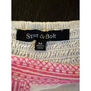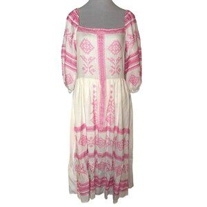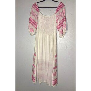 Strut & Bolt Embroidered Linen Blend White & Pink Midi Dress Size M