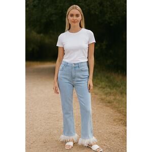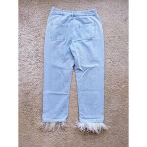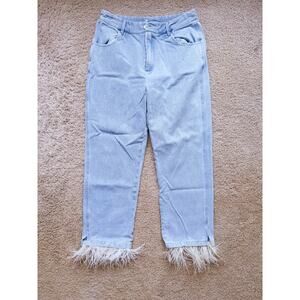 Strut & Bolt Jeans Snap-on Feather Ankle Hem Blue Denim Large Statement Boho