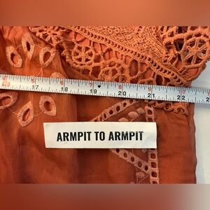 Strut & Bolt Lace Crochet Baby Doll Dress Terra Cotta Flare Sleeve LG Bohemian