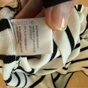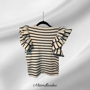 Elevate your style with this chic striped ruffle sleeve top. Perfect for any occasion, this top combines elegance with comfort. The black and white stripes add a classic touch to your wardrobe.