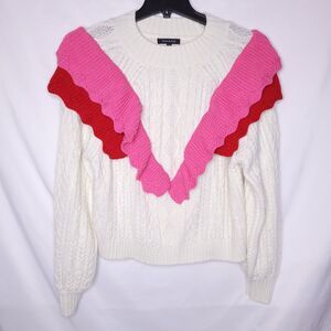 Strut & Bolt Sweater Womens Large Cable Knit Double Ruffle