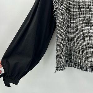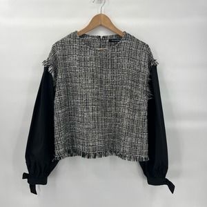 Strut & Bolt Tweed Balloon Sleeve Top Womens Large Black White Metallic